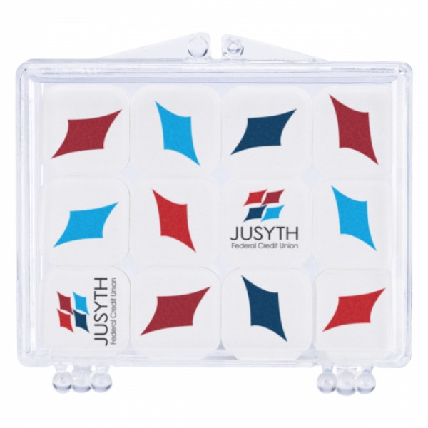 ::Filled with printed mints, this clear plastic case comes with a 4-color process laminated decal. Great giveaway for tradeshows, conventions, or any occasions.::Print your brand in breath freshening fashion on these printed mints.