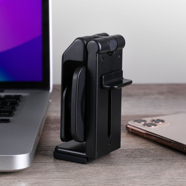 Upgrade any workspace or travel setup with a versatile clamp-style phone holder designed for secure, hands-free convenience. The sturdy base grips firmly to desks, tables, tray tables, and headboards, while a strong magnetic connection keeps your device stable and perfectly positioned. Its pivoting head adjusts for optimal viewing angles whether you're working, streaming, or video chatting. As a practical promotional product, it can be custom branded to keep your logo visible in offices, homes, and on the go.