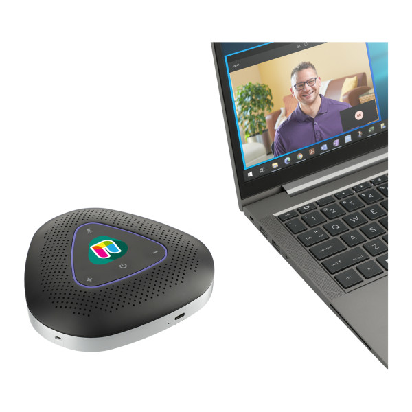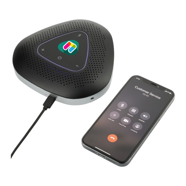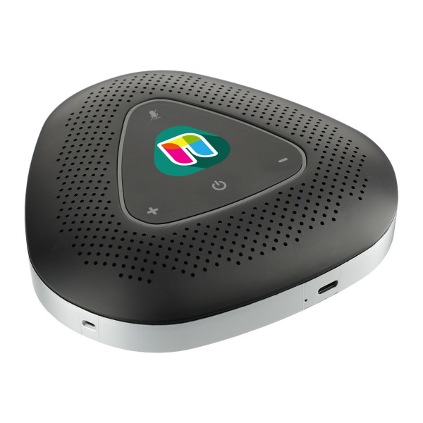 Featuring 360-degree voice pickup with built-in microphones, you can move around the room and still be heard clearly by others on the call. The built-in 12,000 mAh battery provides over six hours of continuous use at max volume. The speaker can connect to your computer, laptop or phone using Bluetooth® or the provided USB-A-to-Type-C cable. The top of the speaker has built-in audio controls and microphone mute button. It takes three and a half hours to charge the speaker from 0% to 100%.Details