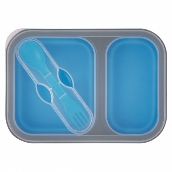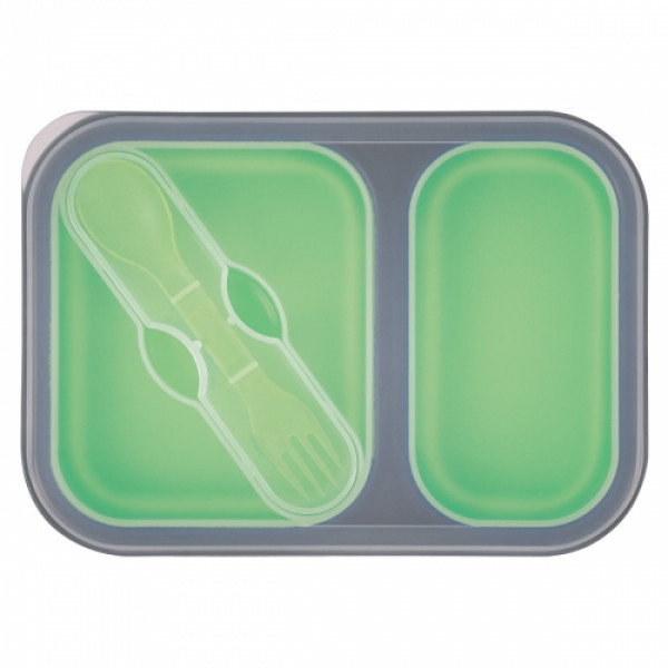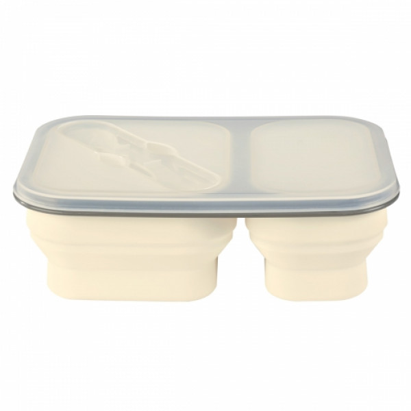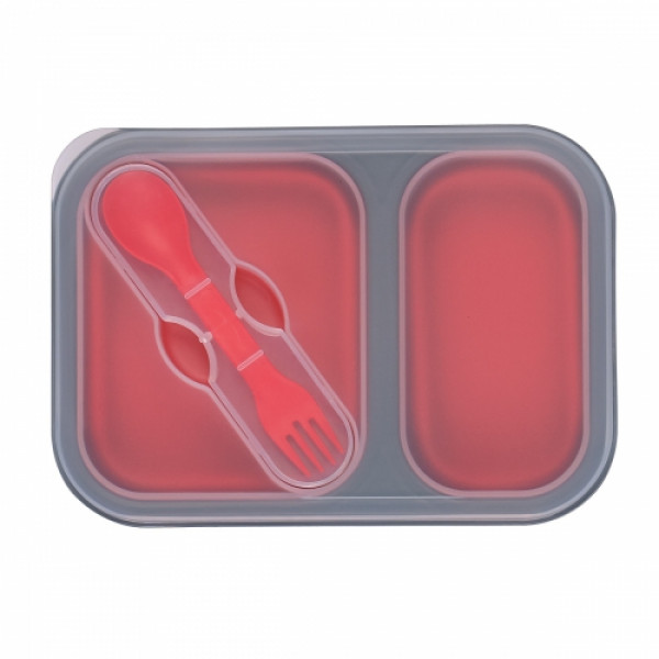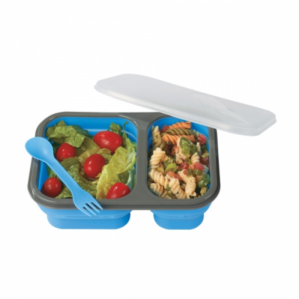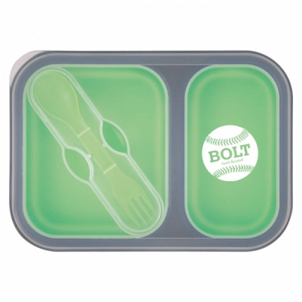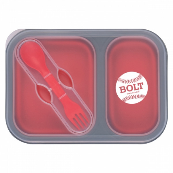 Collapsible 2-Section Food Container With Dual Utensil