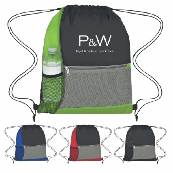 ::Made Of Combo: 210D Polyester And Dobby Non-Woven::Front Zippered Pocket And Mesh Pocket::Drawstring Closure