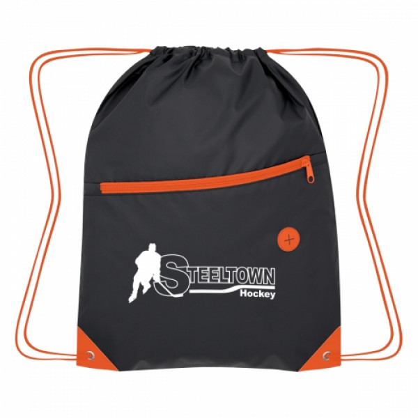 ::Made Of 210D Polyester::Large Front Zippered Pocket::Built-In Slot For Earbuds::Reinforced Eyelets::Drawstring Closure::Spot Clean/Air Dry