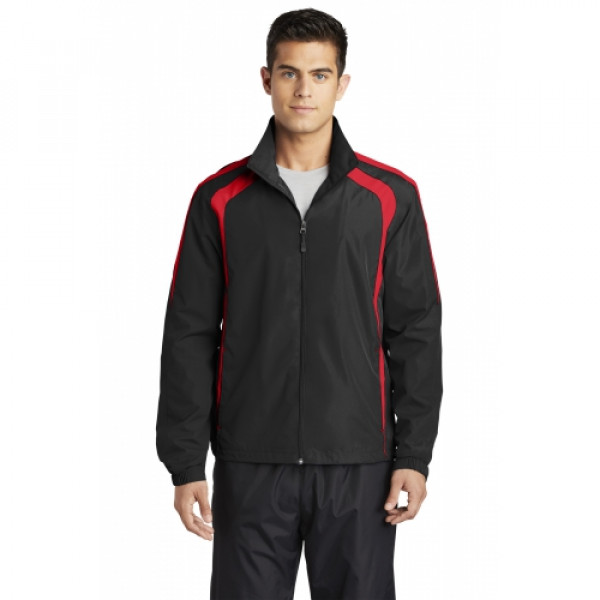 A lightweight top layer this jacket takes on unpredictable weather with athletic colorblocking superb functionality and exceptional breathability.| 100% polyester shell Jersey lining with mesh insets at gussets for added breathability Articulated elbows for greater mobility Half elastic half self-fabric cuffs for comfort Side pockets Drawcord hem with toggle