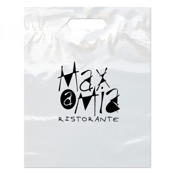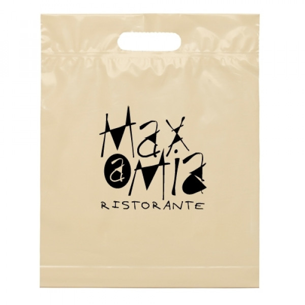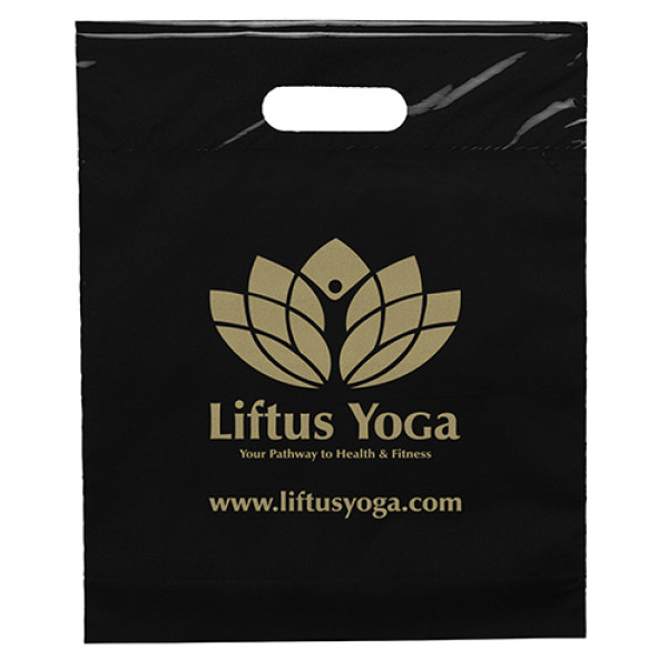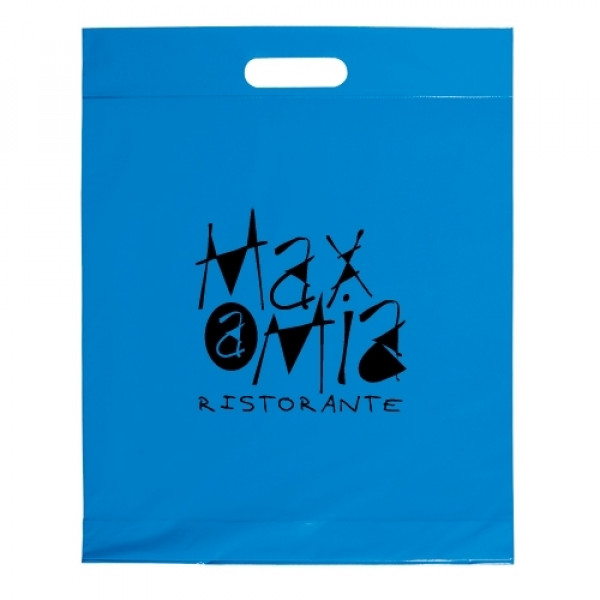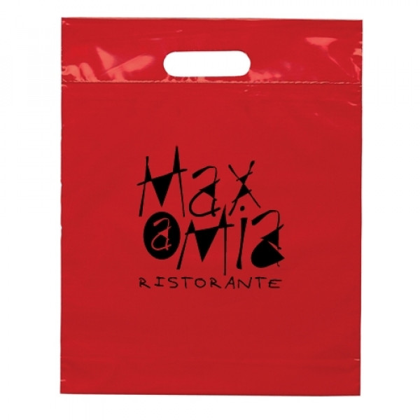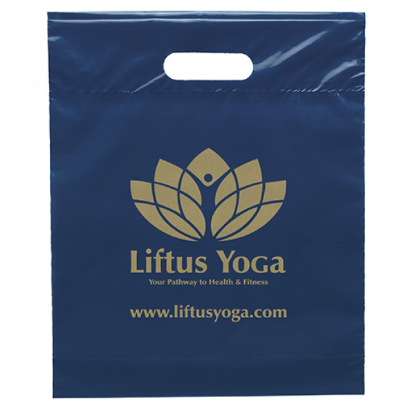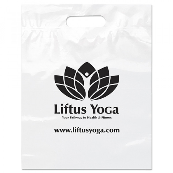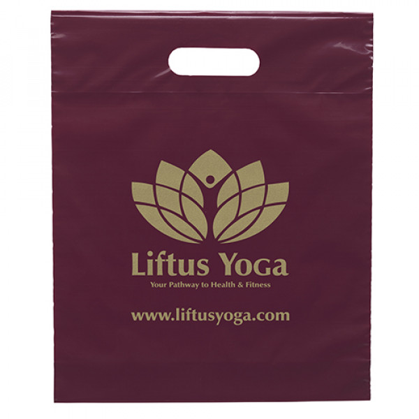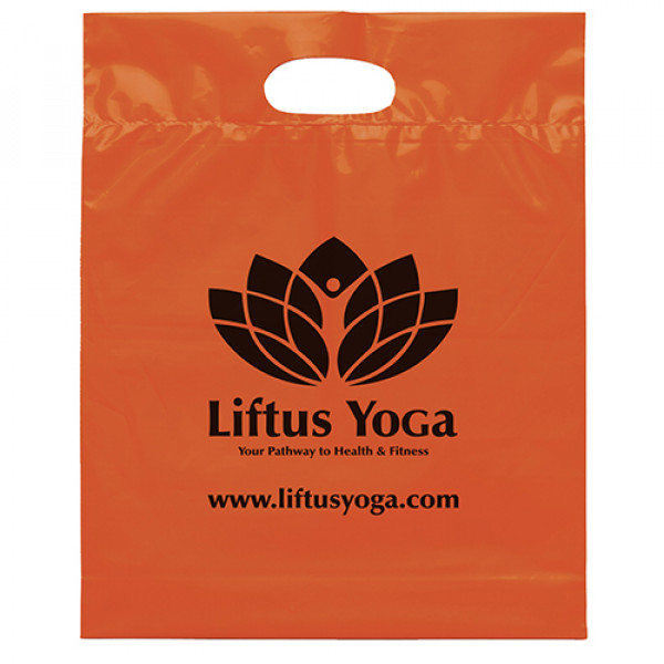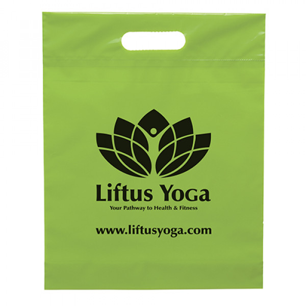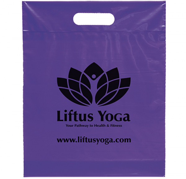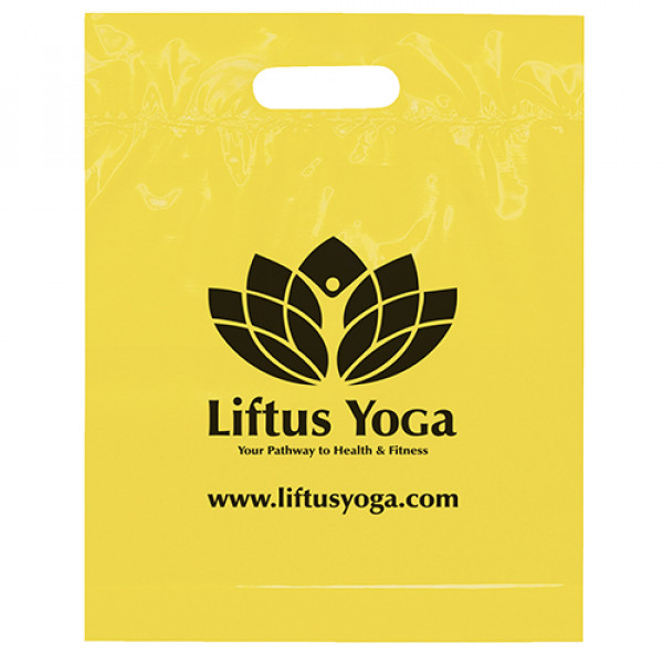 The 12" Colored Die Cut Custom Plastic Bag serves as a tasteful form of packaging to deliver products to your target audience. And don't let the term plastic bag fool you - these 2 1/2 millimeter thick 12" custom plastic bags are thicker, stronger, and well, more attractive than counterparts you see at most retail shops. With fold over reinforced die cut handles and bottom gusset, 12" Colored Die Cut Custom Plastic Bags have the strength to be used over and over again, ensuring on-going exposure for your brand.::One color imprint recommended. Please call for information on multiple color imprint options. ::Plastic 2.5 mil thick 12" bag::Fold over reinforced die cut handles and bottom gusset