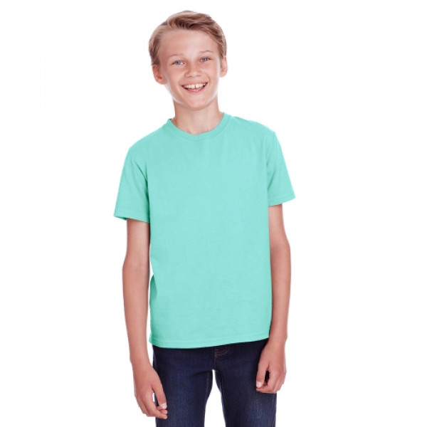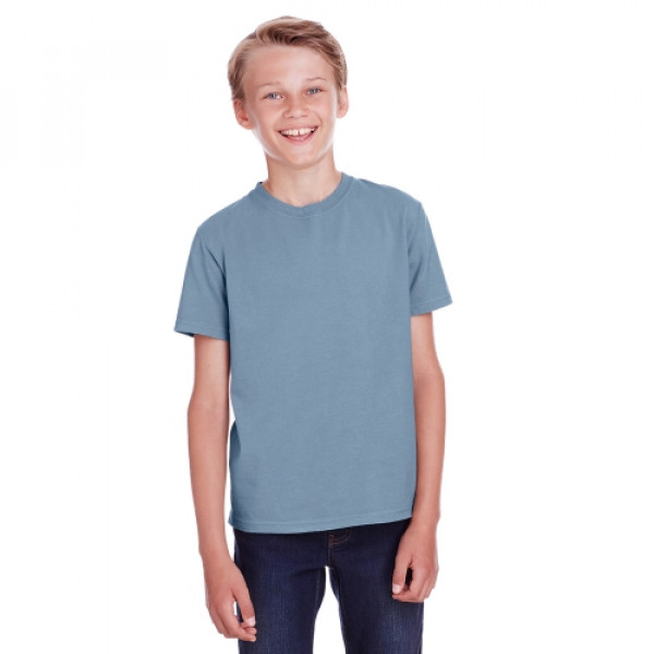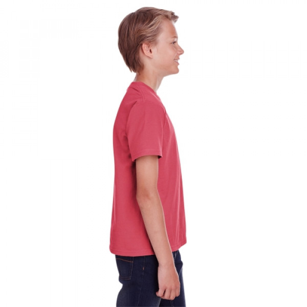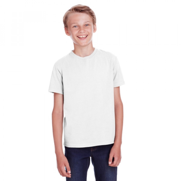 ::5.5 oz., ringspun cotton::Made with 100% american grown cotton from U.S. farms::No-shrink comfort, wash after wash::Twill label and neck tape::Ribbed, set-in collar::Double-needle, cover-seamed neck with lay flat collar that keeps its shape::Double-needle sleeve and bottom hems::Shoulder-to-shoulder tape for durability::Side seamed::Imported