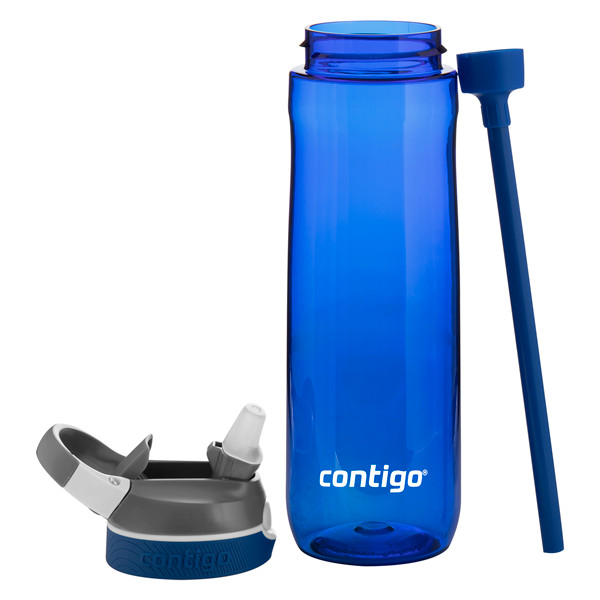 The Contigo® Ashland 24 oz Bottle is built for effortless, one-handed hydration on the go. Made from durable, BPA-free Eastman Tritan™ copolyester, it features a threaded AUTOSPOUT® lid with a secure push-button locking mechanism to help prevent spills. The covered silicone spout and integrated straw make sipping easy and hygienic, while the built-in carrying handle with carabiner adds portability. Perfect for workouts, travel, or daily commutes, this single-wall bottle is ideal as a promotional product that can be customized to keep your brand front and center.