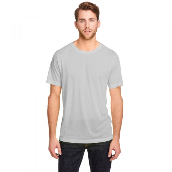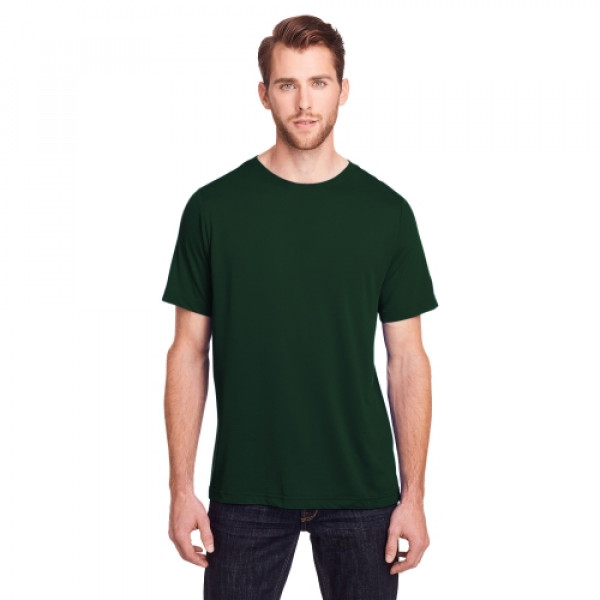 ::4.5 oz/yd2 / 160 gsm, 100% polyester jersey::ChromaSoft technology combines the colorfastness of cationic dyes with::Soft cotton-feel performance::Moisture-wicking and antimicrobial performance::Tear away main label::Active fit::Easy care