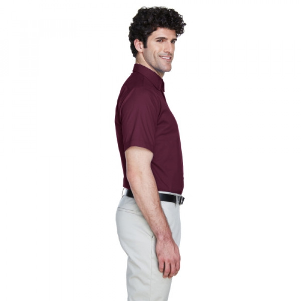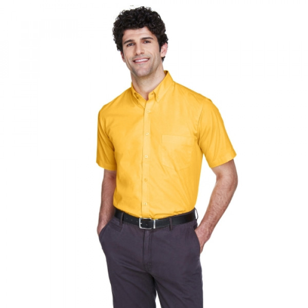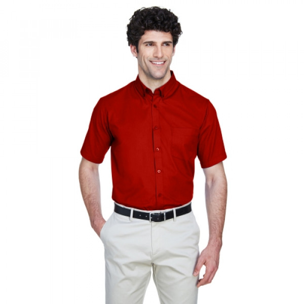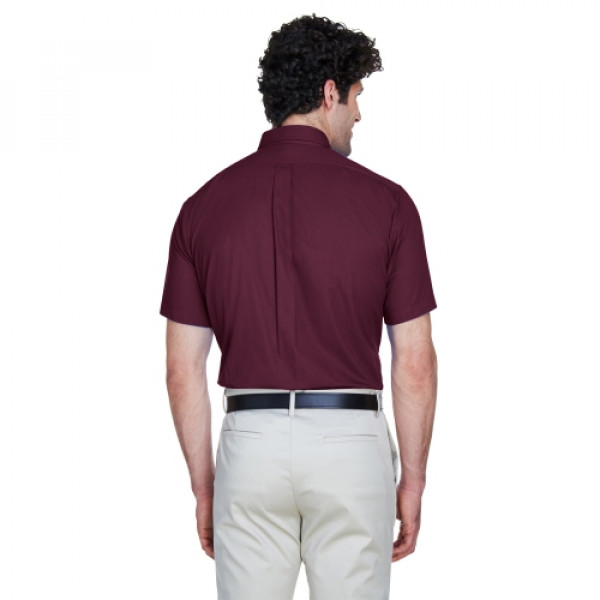 ::55% cotton/45% polyester twill, 4.4 oz./yd2/150 gsm::UV protection performance::button-down collar::durable flat felled side and underarm seams::left chest pocket::back yoke with box pleat