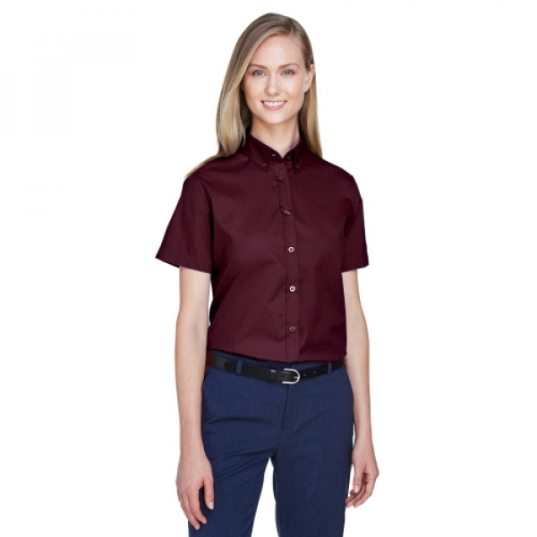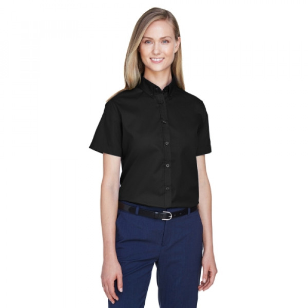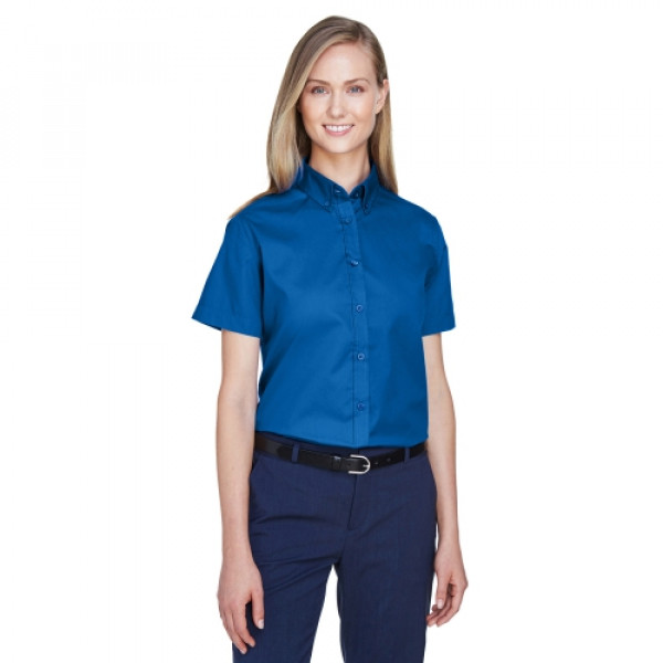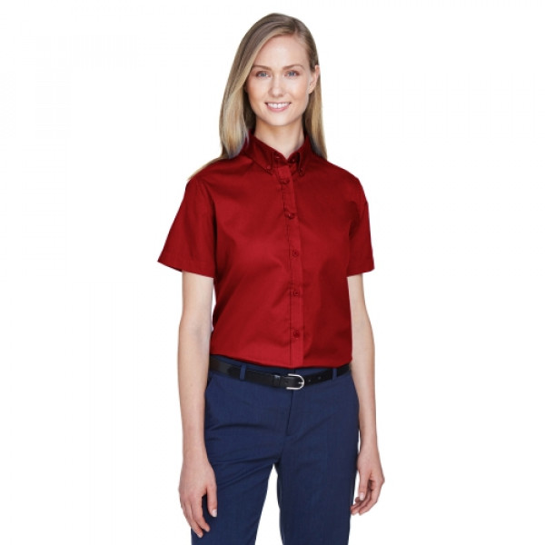 ::55% cotton/45% polyester twill, 4.4 oz./yd2/150 gsm::UV protection performance::button-down collar::durable flat felled side and underarm seams::back waist darts