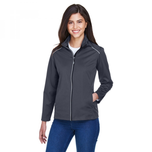 ::6 oz/yd2 / 200 gsm, 3-Layer 100% polyester interlock bonded to polyester birdseye with inner membrane::8,000 mm waterproof rating::1,000 g breathability rating::Matching chin guard::Front and back princess seams for flattering feminine fit::Center front reverse coil zipper with autolock slider and reflective toggle