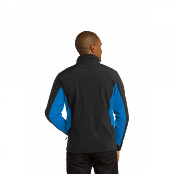 Pair warmth with style--for a great price. Athletic-inspired colorblocking on the sides and sleeves give this soft shell up-to-date appeal, while a polyester microfleece interior keeps you comfortable.::100% polyester woven shell bonded to a water-resistant film insert and a 100% polyester microfleece lining::1000MM fabric waterproof rating::1000G/M2 fabric breathability rating::Front zippered pockets
