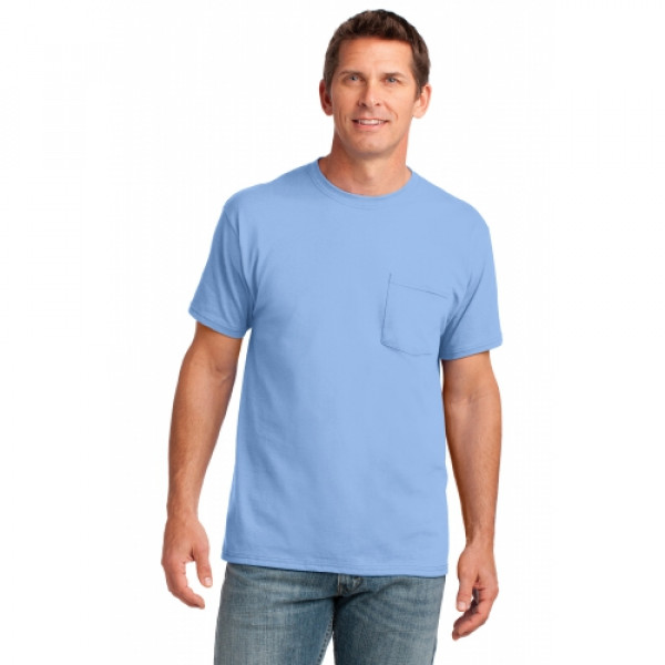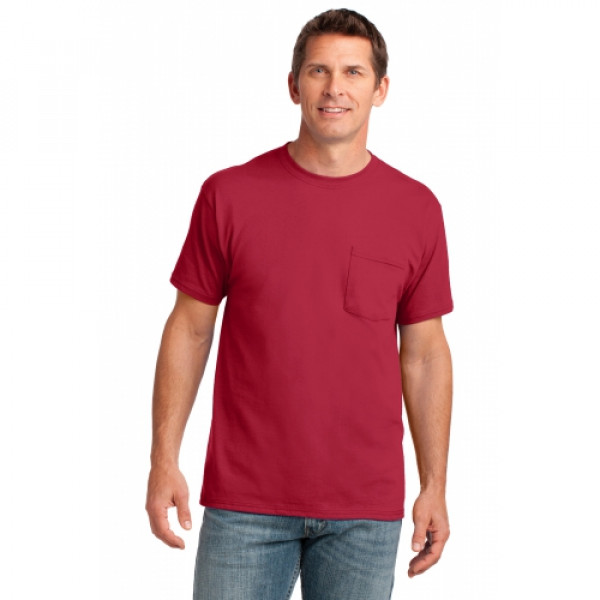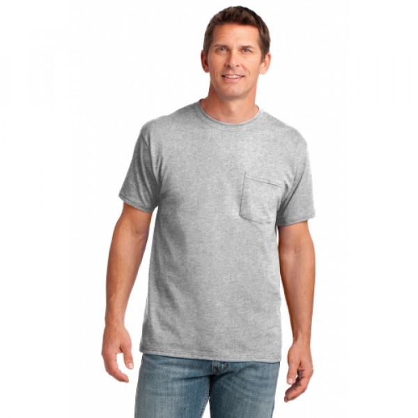 A chest pocket makes this classic, value-priced tee even more indispensible.::5.4-ounce, 100% soft spun cotton::98/2 cotton/poly (Ash)::90/10 cotton/poly (Athletic Heather)::Left chest pocket