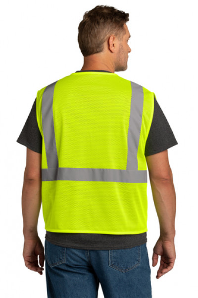 100% polyester mesh for breathability Durable, reflective 2-inch tape meets ANSI 107 requirements and provides 360-degree visibility on body Molded center front zipper closure This garment must be fully zipped to be in compliance with ANSI 107 standardsDetails