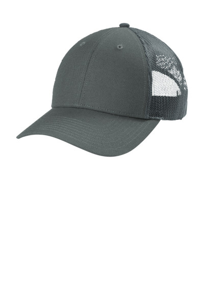 Fabric 100% cotton canvas bill and front two panels; 100% polyester woven mesh mid and back panels