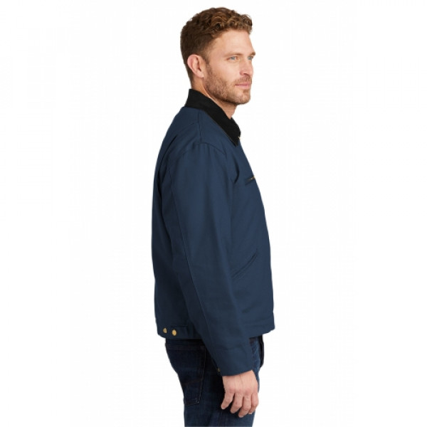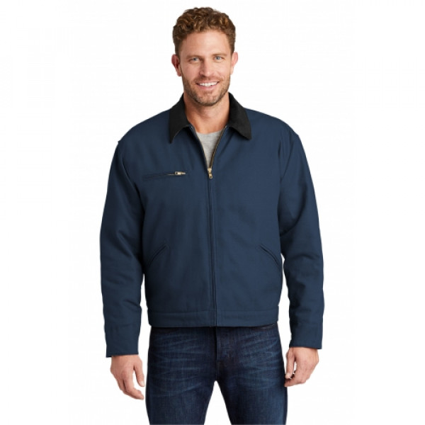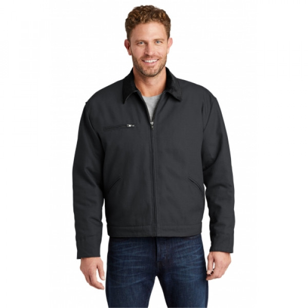 A workwear staple this jacket has triple-needle stitching at the shoulders and armholes so it will last job after job. | 12-ounce 100% cotton duck cloth 6-ounce polyfill nylon lining for added warmth Corduroy collar Bi-swing back Zippered chest pocket Adjustable 2-snap sleeves Front slash pockets Adjustable button waist tabs Port Pockets for easy embroidery access