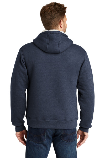 19.8-ounce, 53/47 cotton/poly fleece bonded to 100% polyester high-pile fleece 2-ounce polyfill in sleeves for added warmth 3-panel hood with dyed-to-match drawcord Twill-taped neck Heavy-duty metal zipper Rib knit cuffs and hem Front pouch pocketsDetails