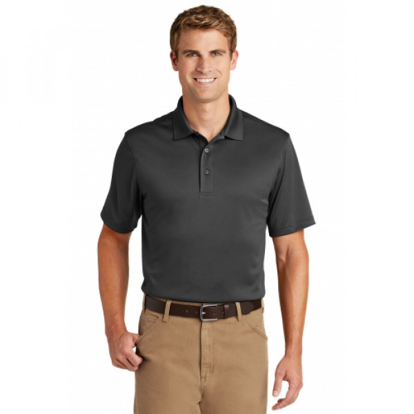 Tough enough for most general work environments, this high-performance polo defies snags, resists wrinkles, fights odors and wicks moisture so you keep your professional edge all day long.::6.6-ounce snag-proof polyester::Rental friendly::Double-needle stitching throughout::Tag-free label::Flat knit collar::3-button placket with dyed-to-match buttons::Set-in, open hem sleeves::Side vents