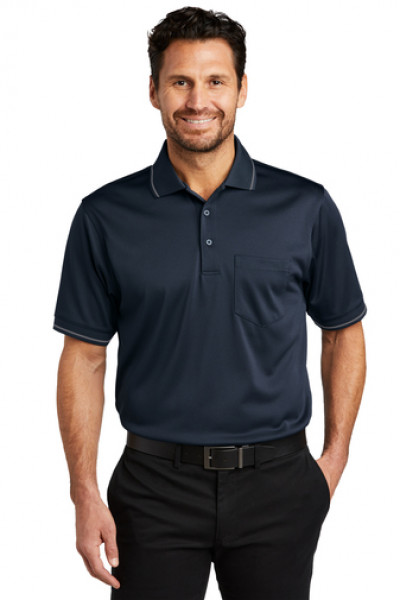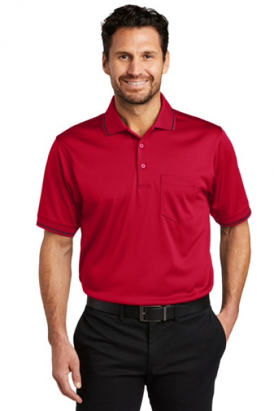 A left chest pocket and tipping add a bit of style to this hardworking essential that also defies snags, resists wrinkles, fights odors and wicks moisture.