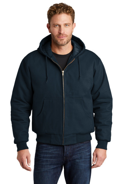 12-ounce, 100% cotton duck cloth 6-ounce polyfill nylon dyed-to-match lining Hood with antique brass eyelets and dyed-to-match drawcord Rib knit cuffs and waistband Front pouch pockets Interior chest pocket Port Pocket™ for easy embroidery accessDetails