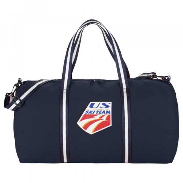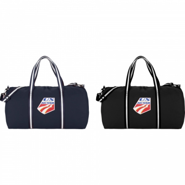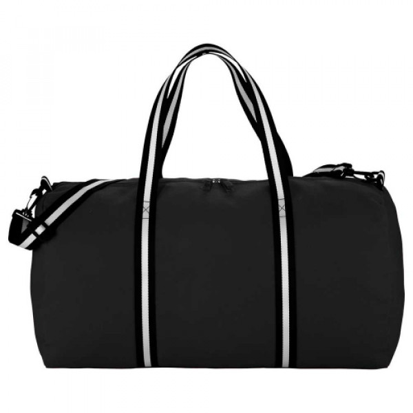 ::This iconic cotton weekender style is the perfect travel bag for your next adventure. ::Contrast stripe cotton webbing gives this classic a fresh look. ::Large zippered main compartment will hold all your clothes and gear. ::Detachable, adjustable striped cotton shoulder strap.