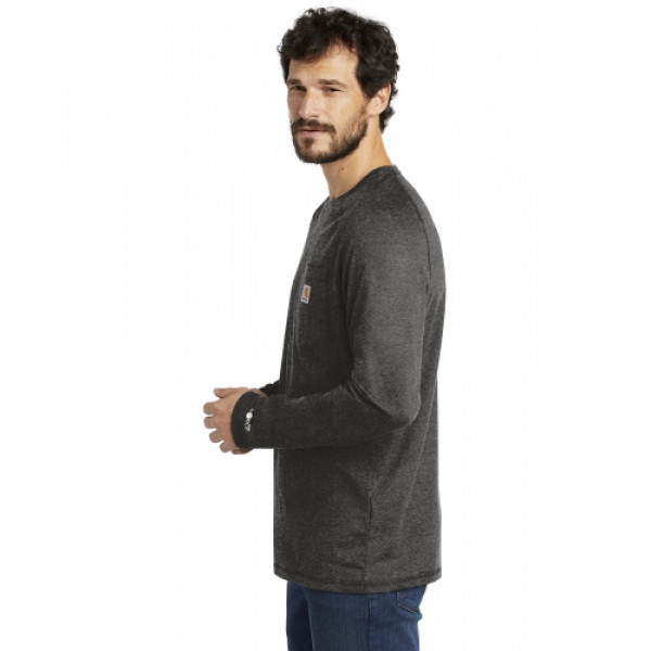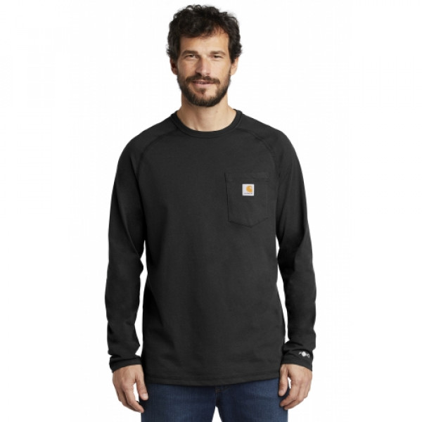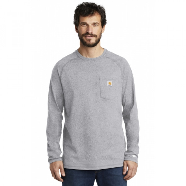::Durable 5.75-ounce, 65/35 cotton/poly plaited jersey knit::59/41 cotton/poly (Heather Grey)::60/40 cotton/poly (Carbon Heather)::FastDry® technology wicks away sweat::Stain Breaker® technology releases stains::Plated knit construction so that poly is against the skin for moisture transportation while ::cotton on the face pulls moisture to the exterior::Raglan sleeves to increase range of motion::Left chest pocket ::Contrast neck tape::Tagless neck label::Smooth flatlock seams::Carhartt label sewn on left chest pocket::Carhartt Force® labeling on left sleeve::Relaxed fit