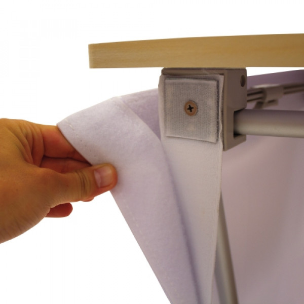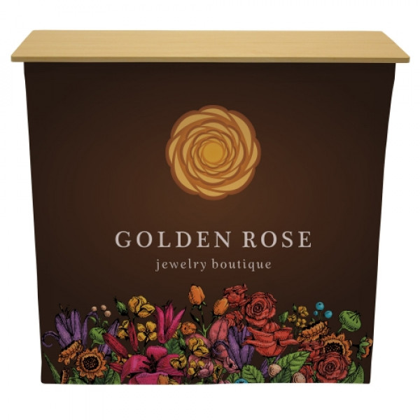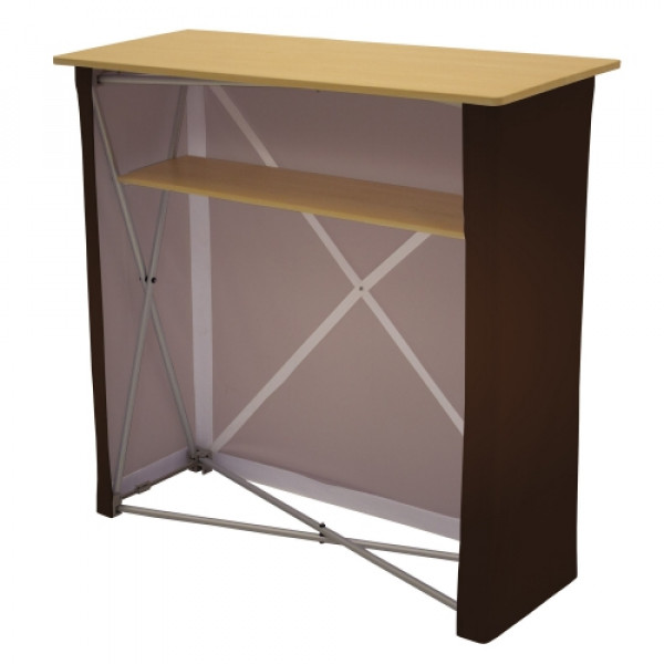 Combining the features of a counter and a pop-up display, the CounterPop is a truly multifunctional display.::Artwork is dye sublimated on polyester knit::Hook-and-loop fasteners make it easy to install graphic panels::Collapsible aluminum frame makes it easy to take down and store when not in use::MDF countertop and internal shelf feature a woodgrain laminate::Countertop supports up to 30 lbs.; internal shelf supports up to 10 lbs.::Countertop folds in half for convenient storage