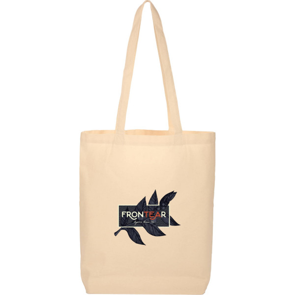 The Cove 5oz Organic Cotton Tote is a lightweight, eco-friendly essential made for everyday use. Crafted from GOTS-certified organic cotton, it features a roomy open compartment and gusseted base that expands for extra storage, making it perfect for books, groceries, or daily essentials. With soft 13" drop handles and a foldable design, this tote is easy to carry and store, while offering a sustainable alternative to plastic bags. As a promotional product, it can be custom decorated or branded for events, giveaways, or eco-conscious campaigns.