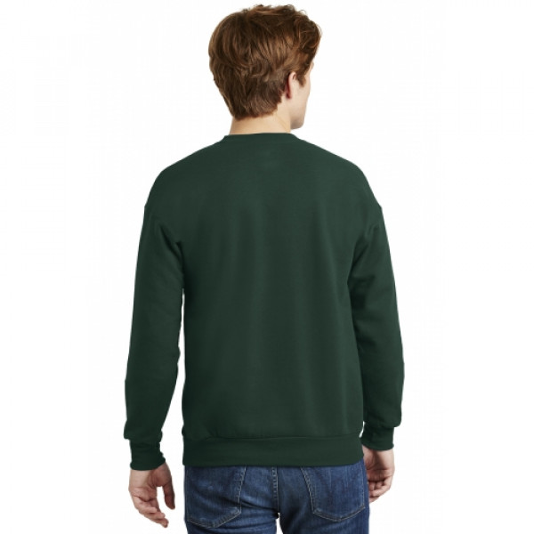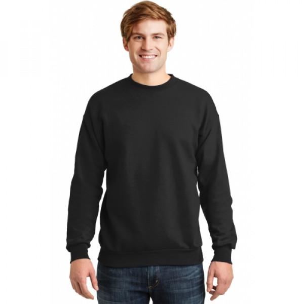 7.8-ounce 50/50 cotton/poly low-pill Air Jet Yarn PrintPro XP fleece with high-stitch density for superior embellishment Coverseamed neck and armholes Ribbed neck cuffs and waistband Set-in sleeves Hanes EasyColor program haneseasycolor.com