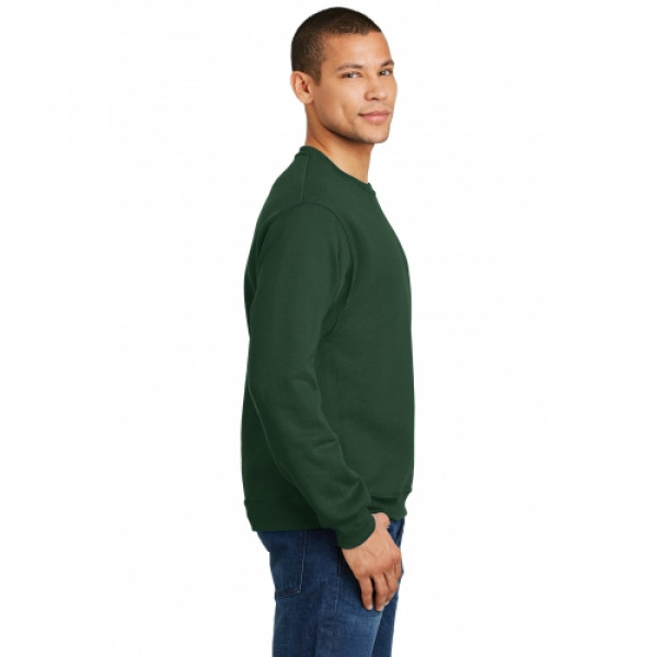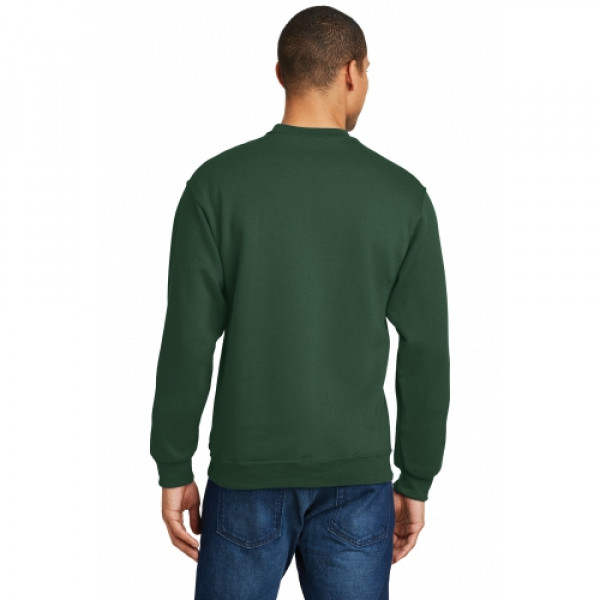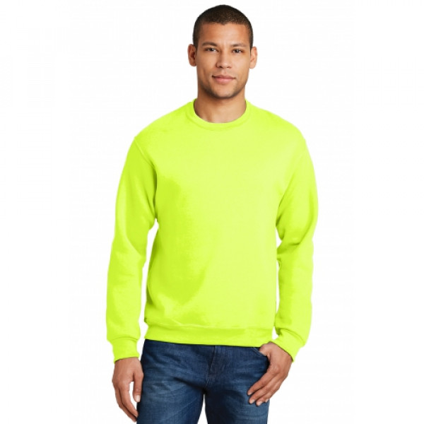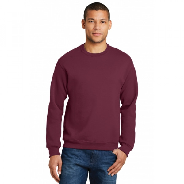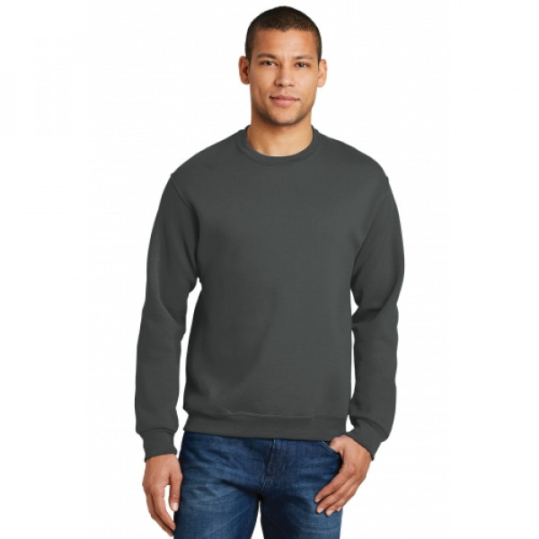 8-ounce 50/50 cotton/poly NuBlend preshrunk pill-resistant fleeceCoverseamed neck armholes and waistband Cuffs and waistband with spandex Seamless body with set-in sleeves Ash (formerly Birch)