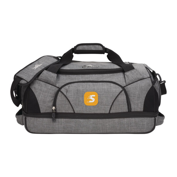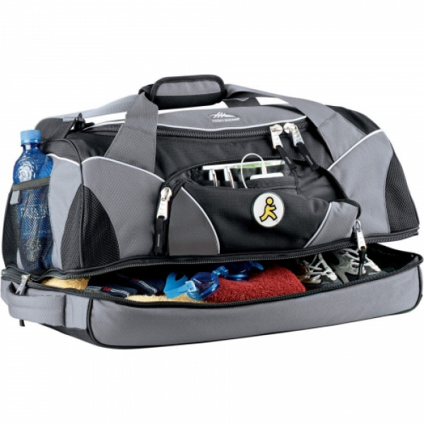 Drop-bottom wet compartment with zippered divider panel opens to make one large compartment.