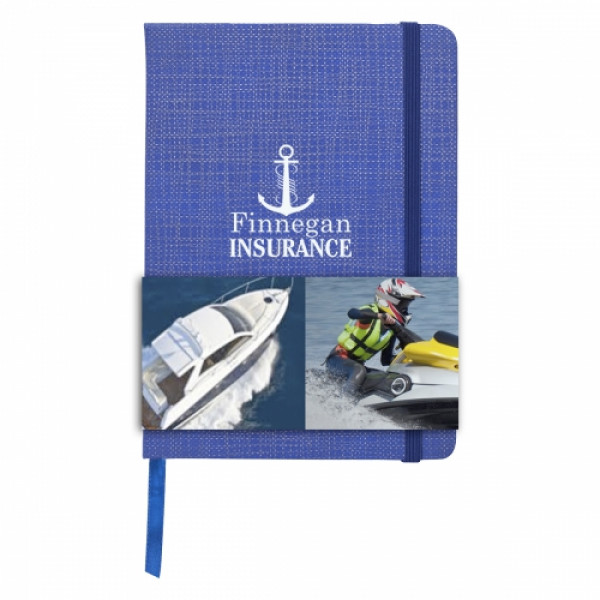 ::80 Page Lined Notebook::Matching Bookmark And Strap Closure::Made Of 80 Gram Non-Woven, Coated Water-Resistant Polypropylene