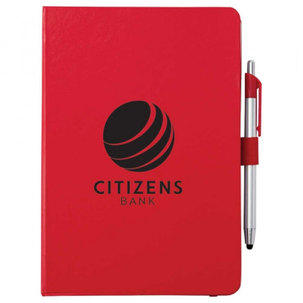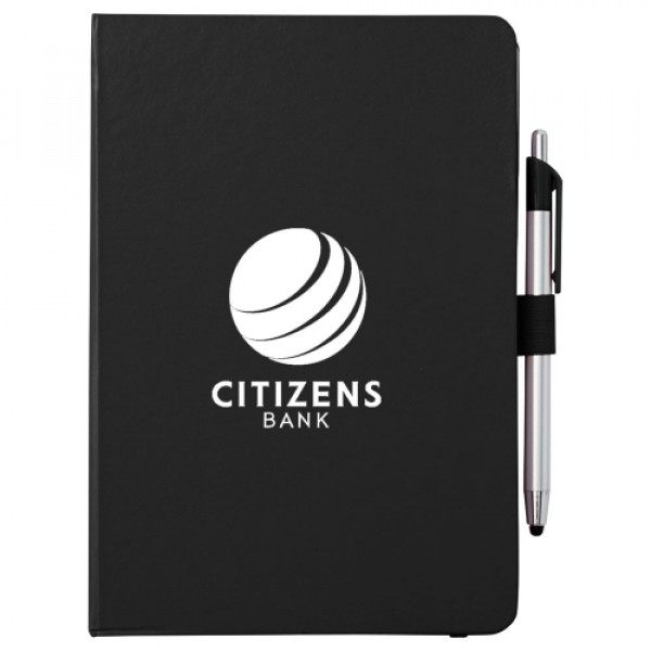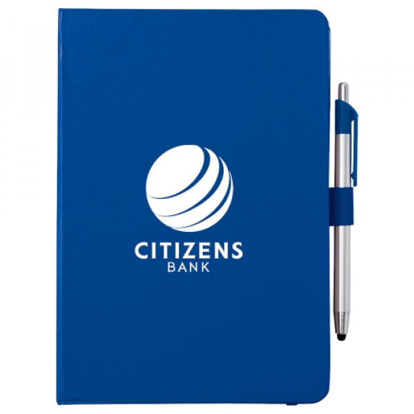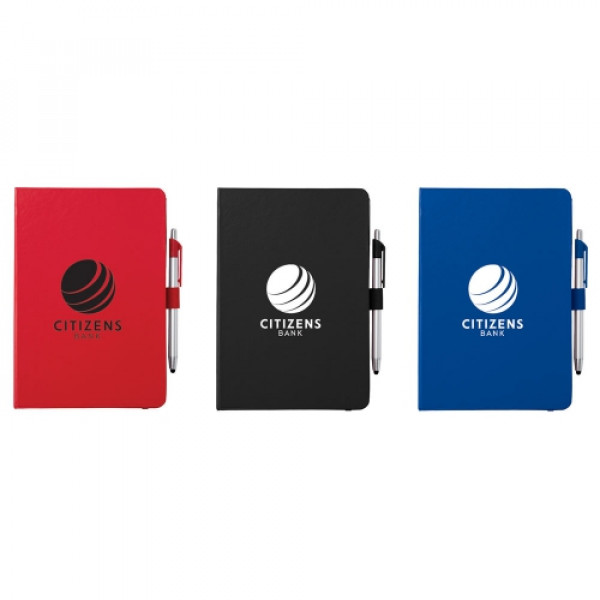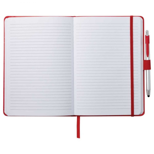 ::The 6" x 8.5" Crown Journal with Pen-Stylus features an elastic closure and a matching color ribbon bookmark. ::It also includes a plastic pen-stylus and 80 ruled pages. ::pens are packed separately. ::Licensed under U.S. Pat. Nos. 8,847,930 and 9,092,077