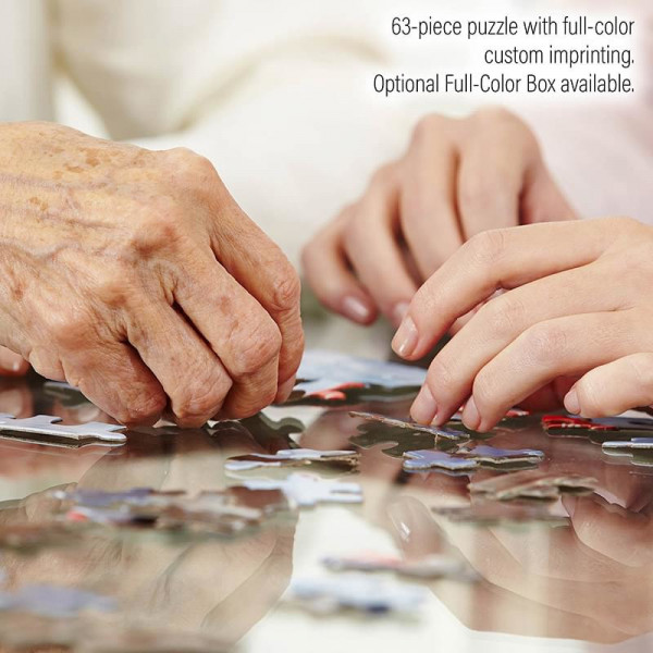 Engage your audience with a fun and interactive promotional product—the 63 Pieces Full Color Custom Jigsaw Puzzle. This vibrant puzzle offers a unique way to showcase your brand, message, or even hidden discount codes. Made from sturdy white cardboard and grey paper board, it's a creative giveaway that appeals to all ages. With full-bleed, full-color customization, it's perfect for marketing campaigns, events, or corporate gifts that leave a lasting impression.