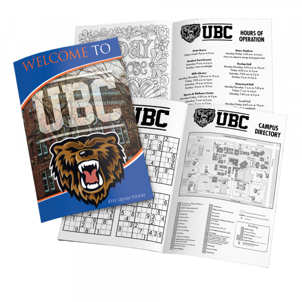 - Our full-color booklets include 2 pages of custom tattoos. Everything is customizable, including the tattoo backings (1-color black). Include games, maps, schedules, and more! You can add 4 more 1-color pages for additional games and activities.