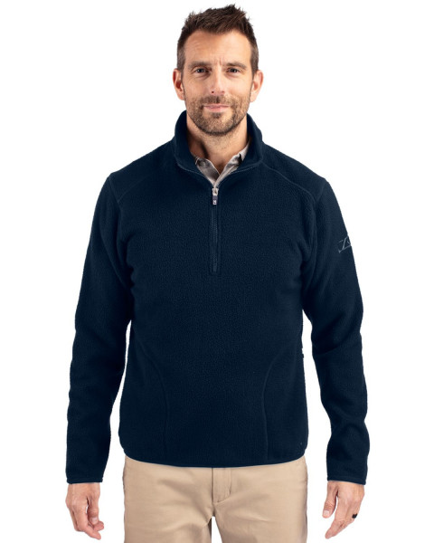 Manufactured with an average of 28 post consumer recycled plastic water bottles, the iconic Men's Cascade Eco Fleece Jacket works for harmony between nature and business. Engineered for exceptional warmth and versatility, designed to be your favorite men's quarter zip jacket for golf, skiing, hiking, boating, work, travel, or weekend getaways. Our high quality deep pile Cascade Sherpa Fleece Jacket is incredibly comfortable, with brushed fleece inside for a cozy feel while maintaining breathability so you can be active and stay warm with unwavering quality and craftsmanship.