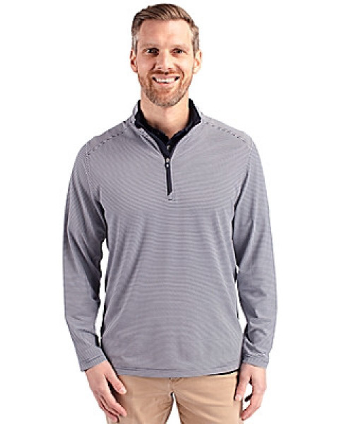 Cutter & Buck® Men's Virtue Eco Pique Micro Stripe Recycled Quarter Zip