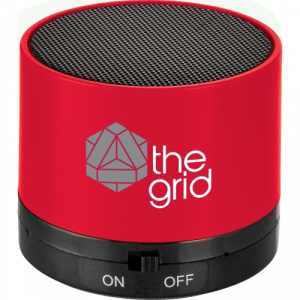 The Cylinder Bluetooth® Speaker is a lightweight speaker with an internal rechargeable battery that provides up to 1.5 hours of nonstop music. 3 Watt Speaker Output. Built in Microphone for conference calls. Includes Micro USB Charging Cable. The Bluetooth working range is 10 meters (33 feet). Charge time: one hour.