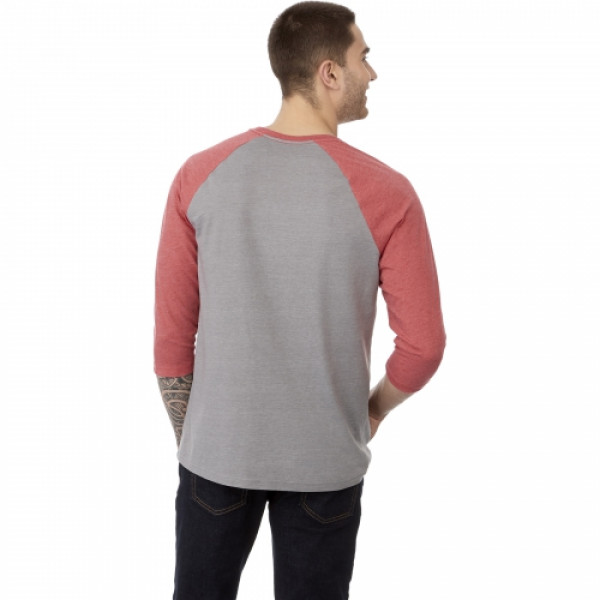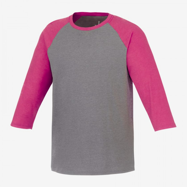 ::The ultra-soft Dakota Three-Quarter Tee is a cotton-poly blend that’s compatible with our unique inFusion branding. ::It’s got a classic sporty look, with a crew neck and rib knit collar. ::For women, the Dakota has a dropped back hem, shaped seams and a tapered waist.