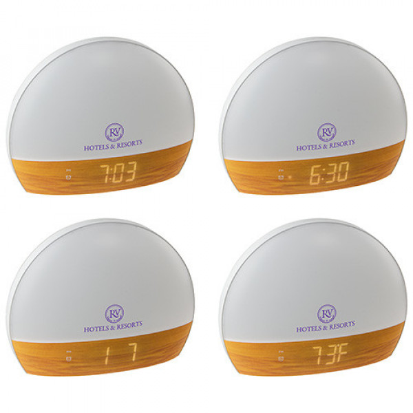 - Sunrise simulation gradually lights up over 20 minutes before alarm time