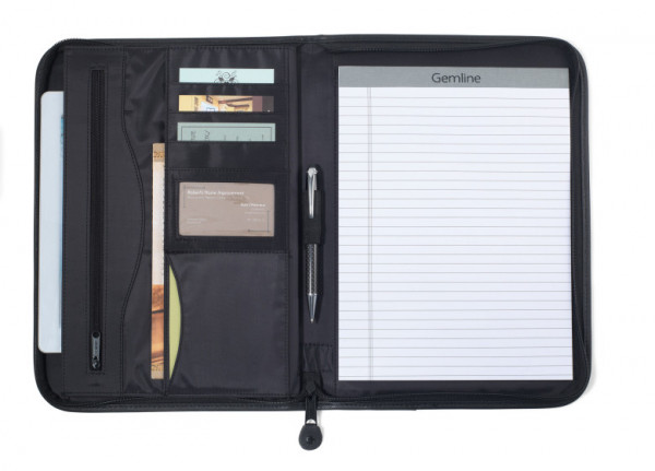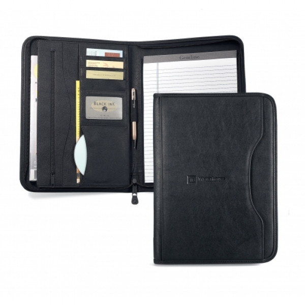 Stay organized in style with this sleek and functional portfolio, designed for professionals on the go. With multiple pockets, a secure zippered closure, and a built-in writing pad, this portfolio keeps all your essentials neatly stored and easily accessible.