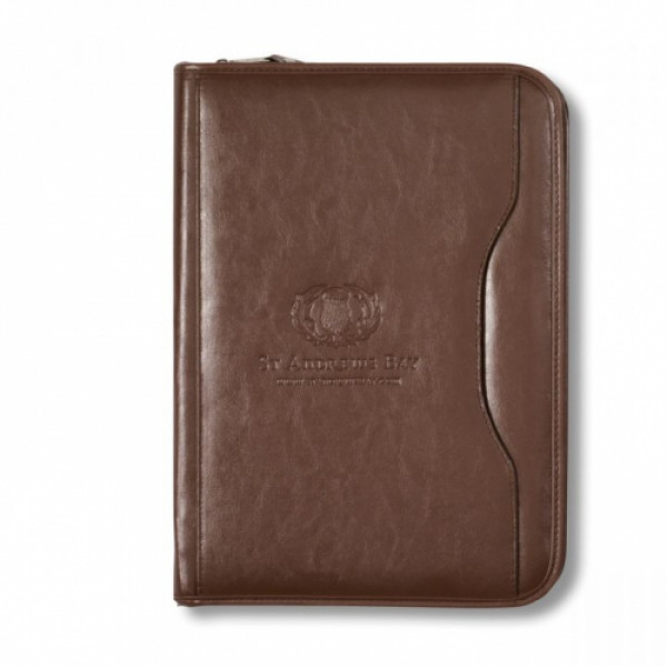 Elevate your professional style with this vintage leather padfolio, ideal for keeping your documents organized and accessible. With its classic design and practical storage, it makes an excellent promotional product that can be custom branded for a polished corporate gift or giveaway.