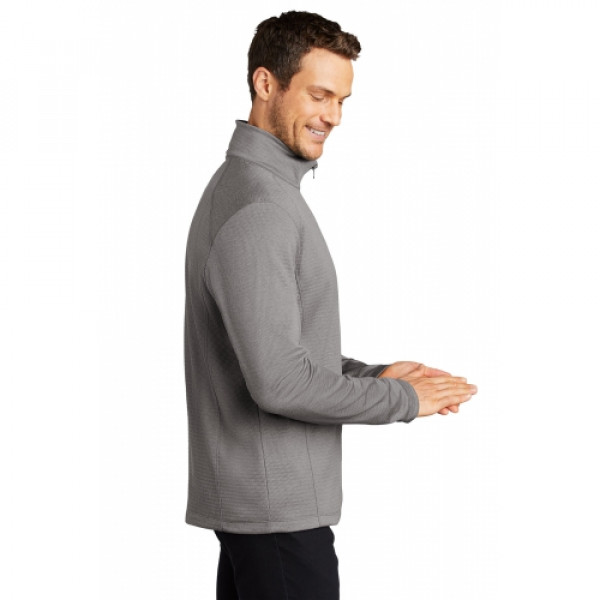 A subtle diamond pattern and heather coloring make this smooth-faced, brushed-back fleece a sophisticated choice. Ideal as a mid or outer layer, this midweight fleece also has stretch for ease of movement and added comfort. ::12.8-ounce, 100% polyester fleece::Reverse coil zippers::Open cuffs and hem