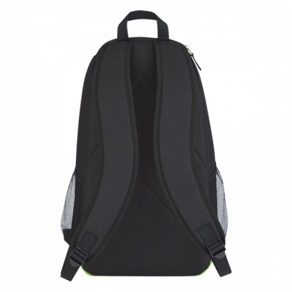 ::Made Of Combo: 600D Polyester And 420D Polyester::Adjustable Padded Shoulder Straps And Web Carrying Handle::Double Zippered Main Compartment With Laptop Pocket And Padded Back::Large Front Zippered Compartment With Mesh Ventilation::Zippered Top Pocket::2 Side Mesh Pockets::Leatherette Lash Tab::Spot Clean/Air Dry