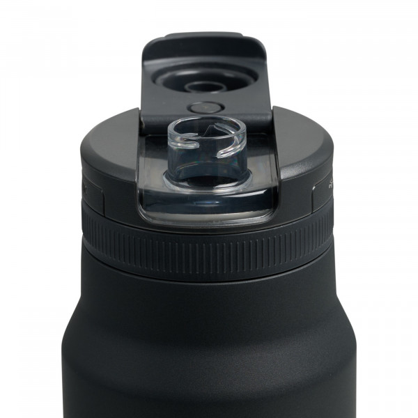 - Magnetized screw-top chug cap stays open while drinking