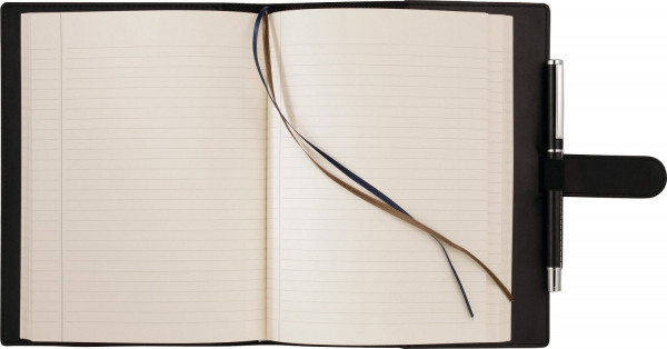 The 6.5" x 8.25" Dovana™ JournalBook® is a stylish and functional notebook designed for meetings, journaling, or everyday note-taking. Featuring a smooth UltraHyde cover and a sophisticated design, this journal provides 125 lined pages, an elastic closure, and a ribbon page marker for easy organization. The expandable interior document pocket adds extra convenience for storing notes and small papers.