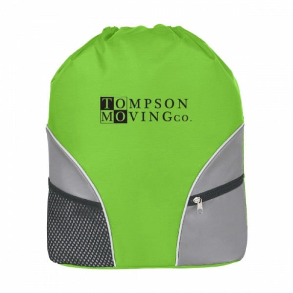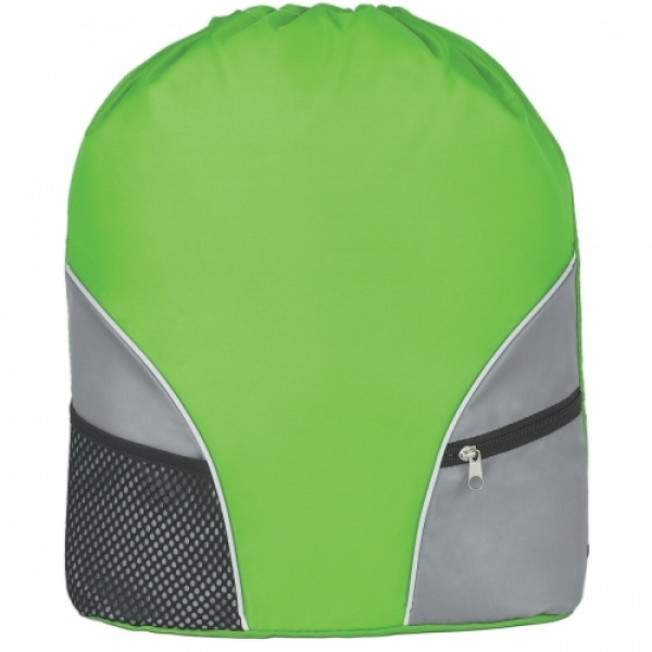 ::Made Of 210D Polyester::Adjustable Shoulder Straps::Front Mesh Pocket And Front Zippered Pocket::Drawstring Closure::Spot Clean/Air Dry