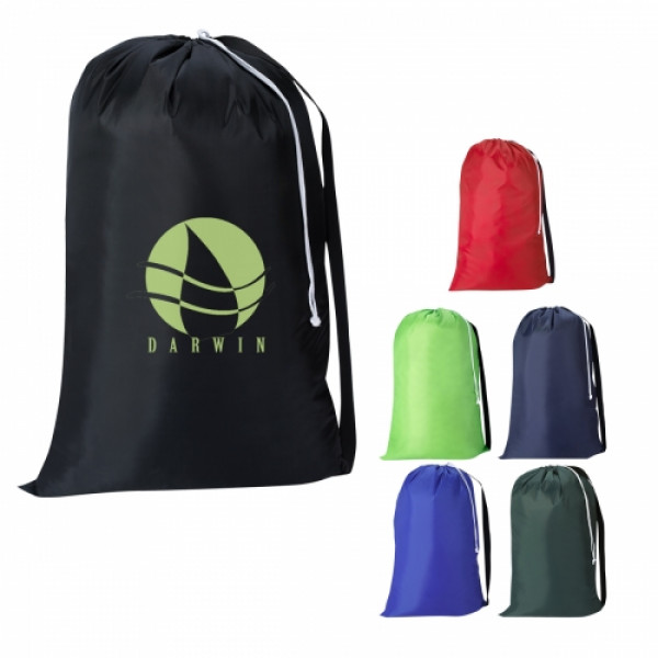 The Drawstring Utility Bag is great to take to college and do your laundry in the dorm or at your first apartment! ::Drawstring Closure::Black Nylon Sling Strap::Spot Clean/Air Dry