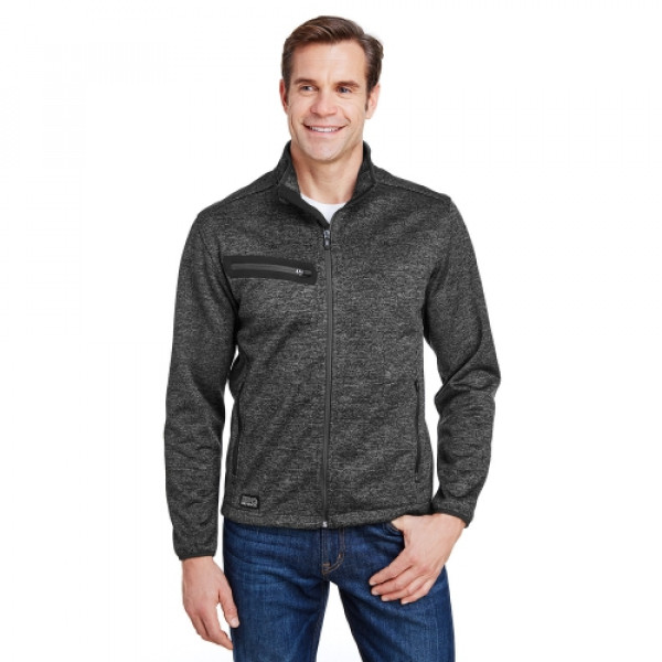 Fabric:::14.5 oz., Smart Shell bonded sweater fleece technology::100% polyester fine gauge melange sweater knit exterior::100% polyester microfleece interior::Windproof::Water-resistantFeatures:::Zippered sonic weld security chest pocket::Zippered hand pockets::Inside pocket secures larger items::Imported