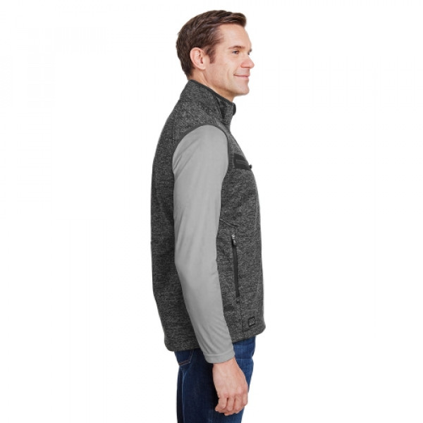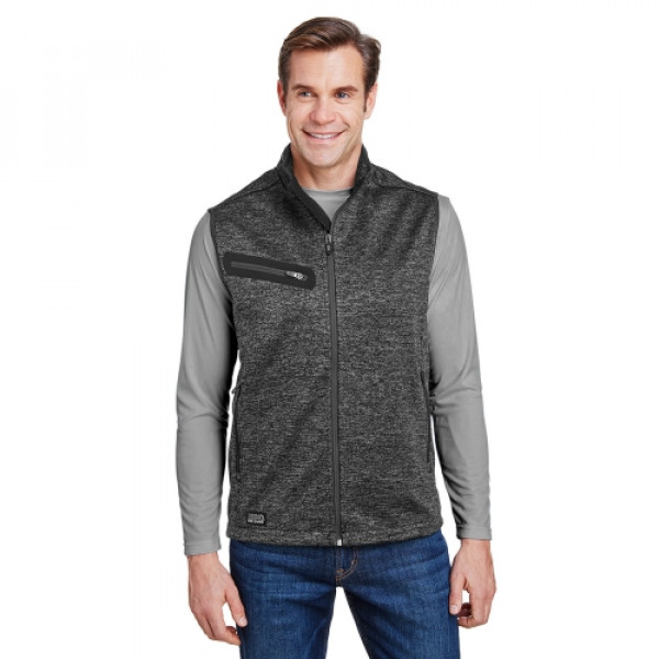 Fabric:::14.5 oz Smart Shell bonded sweater fleece technology::100% polyester fine gauge mélange sweater knit exterior::100% polyester microfleece interior::Windproof::Water-resistantFeatures:::Zippered sonic weld security chest pocket::Zippered hand pockets::Inside pocket secures larger items::Imported