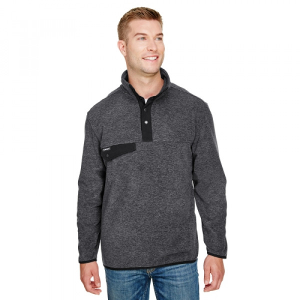 Fabric:::7 oz., mélange mountain fleece::90% polyester/10% spandex dewspo trims::Anti-pill interior and exterior to ensure longevity::Anti-static finishFeatures:::Stretch cuff and waistband::Chest pocket with snap closure::Quarter-length four-snap placket with signature DRI-DUCK snaps::Imported
